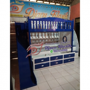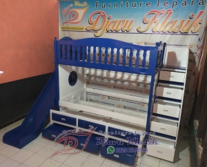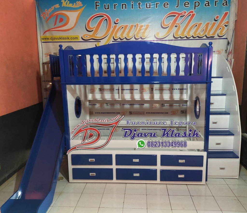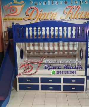 Tempat Tidur Tingkat dan Tempat Belajar Anak merupakan produk dari Djavu Klasik Furniture yang di proses produksi langsung di workshop sendiri dengan tukang kayu yang berpengalaman dalam bidangnya dan di lengkapi area bermain perosotan anak. Dalam proses produksi tempat tidur tingkat ini, kami senantiasa memantau pelaksanaan dari setiap bagian dan prosesnya, tujuan kami ialah mendapatkan hasil yang optimal dan berkualitas, sehingga dapat awet dan baik dikala dipakai di kamar tidur anak.
