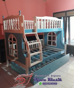 Model Tempat Tidur Tingkat Anak Klasik Modern merupakan produk dari Djavu Klasik Furniture yang di proses produksi langsung di workshop sendiri dengan tukang kayu yang berpengalaman dalam bidangnya dan di lengkapi tempat tidur sorong anak. Dalam proses produksi tempat tidur tingkat ini, kami senantiasa memantau pelaksanaan dari setiap bagian dan prosesnya, tujuan kami ialah mendapatkan hasil yang optimal dan berkualitas, sehingga dapat awet dan baik dikala dipakai di kamar tidur anak.