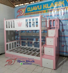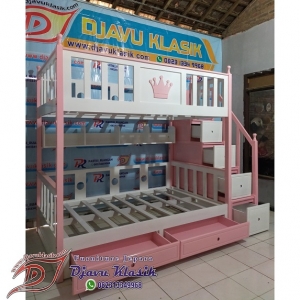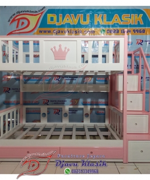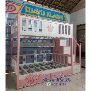 Tempat Tidur Tingkat Anak Murah merupakan tempat tidur anak produk dari Djavu Klasik Furniture yang di proses produksi langsung di workshop sendiri dengan tukang kayu yang berpengalaman dalam bidangnya dan di lengkapi tangga laci, rak buku dan laci bawah tempat tidur. Dalam proses produksi tempat tidur tingkat ini, kami senantiasa memantau pelaksanaan dari setiap bagian dan prosesnya, tujuan kami ialah mendapatkan hasil yang optimal dan berkualitas, sehingga dapat awet dan tahan lama baik dikala dipakai di kamar tidur anak.