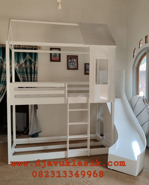 Tempat Tidur Susun Anak Perosotan merupakan produk dari Djavu Klasik Furniture yang di proses produksi langsung di workshop sendiri dengan tukang kayu yang berpengalaman dalam bidangnya dan di lengkapi area bermain perosotan anak. Dalam proses produksi tempat tidur tingkat ini, kami senantiasa memantau pelaksanaan dari setiap bagian dan prosesnya, tujuan kami ialah mendapatkan hasil yang optimal dan berkualitas, sehingga dapat awet dan baik dikala dipakai di kamar tidur anak.