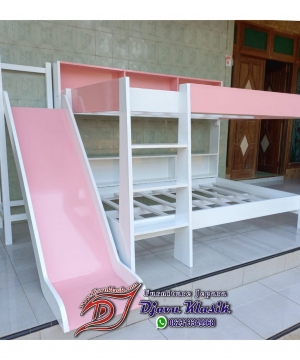 Tempat Tidur Tingkat Anak Perosotan Minimalis merupakan produk dari Djavu Klasik Furniture yang di proses produksi langsung di workshop sendiri dengan tukang kayu yang berpengalaman dalam bidangnya dan di lengkapi area bermain perosotan anak. Dalam proses produksi tempat tidur tingkat ini, kami senantiasa memantau pelaksanaan dari setiap bagian dan prosesnya, tujuan kami ialah mendapatkan hasil yang optimal dan berkualitas, sehingga dapat awet dan baik dikala dipakai di kamar tidur anak.